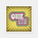 Serviettes en papier Quiz nuit fêtes. Avec une grosse typographie audacieuse entourée de lumières de dressing. L'arrière - plan est un motif de sunburst jaune.