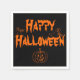 Une amusante serviette en papier de fête conçue par texto Halloween décorée de fantômes de bottes et d'un citrouille.