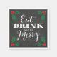 Ajoutez une touche personnalisée à votre dîner de vacances avec des serviettes en papier festives "Mange, Bois et Soyez Joyeux". Les serviettes en papier présentent une typographie élégante, des baies sèches rouges et vertes et un arrière - plan de tableau noir rustique. Vous pouvez ajouter du texte à la conception en cliquant sur le bouton Customiser.