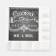 Les serviettes de papier de ce beau mariage rustique fait sur commande est parfaite pour un mariage campagnard ou un mariage orienté vintage. Il a les éléments romantiques de conception avec lui A IMPRIMÉ l'arrière - plan de tableau et l'illustration noirs de cru avec le dessin de typographie et d'old-fashioned de "cérémonie" de mot d'une main du marié plaçant un anneau sur la main de la jeune mariée. Concevez par le © d'Elke Clarke pour MonogramGallery chez Zazzle. Un texte vintage pour les initiales de prénom de jeunes mariés ou le monogramme et la date de mariage peut être changé ou la couleur blanche être changé en choisissant la "personnaliser il" pour employer le menu d'édition.