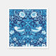Serviettes en papier dans un William Morris, motif de tapisserie Art Nouveau intitulé "The Strawberry Thief", d'oiseaux stylisés, de fleurs, de fraises et de feuilles, numériquement rehaussés et colorés dans les tons bleu cobalt, bleu clair et blanc, sur un profond arrière - plan bleu indigo