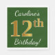 Serviettes Jetables Vert, Faux Gold 12e anniversaire + Nom personnalis