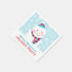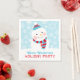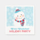 La serviette de la fête de l'hiver aux merveilles présente un joyeux bonhomme de neige d'hiver portant un casquette, un foulard et un texte personnalisé. L'arrière - plan a un motif de flocons de neige. Couleurs bleu glace, turquoise, rouge et blanche avec des accents noir et gris.