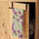 Serviettes de cuisine aux couleurs violettes et vertes utilisant des motifs circulaires. Belles serviettes de plat pour votre cuisine.