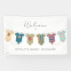 Welcome your guests to your Baby Shower with this sweet Sesame Street welcome banner featuring illustration of baby bodysuits representing Sesame Pals Big Bird, Cookie Monster, Oscar the Grouch, Bert, Ernie, and Abby Cadabby. Personalize by adding your name and shower date!