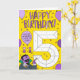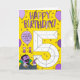 This cute yellow and purple card will help your five-year-old child feel special on their birthday. Features an illustration of Count von Count, showing your son or daughter how to colour by numbers. They will colour in a big number 5, and if they follow the instructions correctly, the resulting art will look 3D! The colour guide on the left is made of shapes you can edit in the Personalise screen, so you can change them to your child's favourite colours.