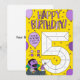 This cute yellow and purple card will help your five-year-old child feel special on their birthday. Features an illustration of Count von Count, showing your son or daughter how to colour by numbers. They will colour in a big number 5, and if they follow the instructions correctly, the resulting art will look 3D! The colour guide on the left is made of shapes you can edit in the Personalise screen, so you can change them to your child's favourite colours.