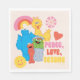 This cute Sesame Street design features Cookie Monster, Big Bird, Elmo and Oscar the Grouch promoting " Peace, Love and Sesame." © 2021 Sesame Workshop. www.sesamestreet.org