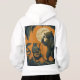 Illustration fantaisiste d'un ours chantant dans un microphone tandis qu'un raton laveur joue de la guitare. Un serpent aux ailes de chauve-souris observe dans l'arrière - plan, et une petite souris regarde derrière un rocher. La scène se déroule dans une grotte éclairée par la lune, avec un arrière - plan orange vif.
