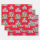 Set Ass't on Red Adorable Pig Christmas Gift Wrap