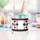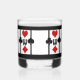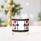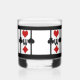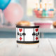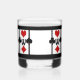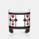 Perfect for drinks on Poker Night or your next Card Party, these personalized whiskey glasses feature an Art Deco inspired original design w/ a card playing theme composed of 4 sets of bright red & black card suit symbols (diamond, clover, heart & spade) w/a custom text field for your monogram in the centre, set on a snow white background w/ black thick & thin vertical stripes & thick top & bottom borders.