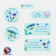 Charming waterproof school stickers for kids. Set of 24 different square and round name stickers, mermaid theme with fish, starfish, and seashells.