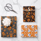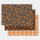 Set of 3 Skull and Crossbones Pumpkin Orange Wrapping Paper Sheet