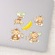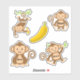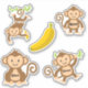 Set of 4 custom cut stickers of cute monkeys and a banana. For mailing label, scrapbooking, laptop skins, cell phone cases, doodle journals, or belongs to label for identifying property. The personal names are easy to edit or remove completely.