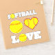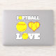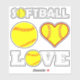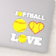 A lovely set of four contour stickers for fastpitch softball lovers, featuring four cute designs: 1) SOFTBALL, 2) a simple softball graphic, 3) a heart-shaped softball, and 4) Softball LOVE.