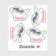 Cute zebra name labels. Set of four small stickers featuring a custom name printed in a whimsical pink letters and a fun illustration of a playful zebra. Use them to mark a girls notebooks, water bottle, phone or other possessions.