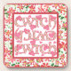 A set of six smart coasters with the Welsh word 'cwtch', meaning 'cuddle' or 'hug' in a Celtic script, in a pretty floral pattern and dotted with pink hearts.