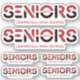 This SENIORS design has a bit of a split personality, making it a great option for two school colours. You're probably feeling a little split yourself about wanting to go and wanting to stay! Design includes space to personalize with your name at the top and your school name at the bottom (or whatever text you choose). Class year fills the inside of the "O" in SENIORS. Available in the most popular and common school colour combinations - green/yellow, red/yellow, crimson/gold, blue/yellow, navy/gold, black/gold, black/yellow, black/orange, purple/yellow, red/silver and red/black. You can customize the colours to fit your school as well.
