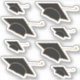 Assortment of black graduation caps with gold tassels. Use for gifts or just for fun. On the extra-small sheet, large caps are about 2" wide, small caps 1" wide.