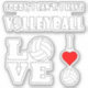 A sweet set of contour stickers for serious volleyball lovers, featuring three cute designs: 1) Sorry, I Can't...I Have Volleyball, 2) Volleyball LOVE, and 3) I Love/Heart Volleyball.