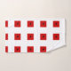 Set of red and white bath towels with leaves