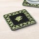 A very pretty set of six Square Cork-Backed Coasters, with an Art Nouveau style pattern of Lilies-of-the Valley on a Black background and matching border; from the Posh & Painterly 'For the Love of Lilies' collection.