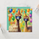 2 partying emus celebrating Seth's birthday. The greetings on the card are "Seth Happy Birthday". On the back of the card is a small version of the same picture. There is plenty of room to write a message. Made with the assistance of Bing.