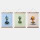 Setof Three Mad Birds Abstract Green Blue Yellow Hanging Tapestry