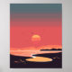 Setting Sun on the Coast Retro Style Poster