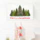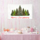 Seven decorated Christmas Trees in a row with Merry Christmas written underneath them.