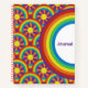 Edit the text on this versatile notebook that may be used as a journal or something else. The covers are embellished with a groovy graphic pattern inspired by the 1970s with overlapping discs in a rainbow of colours centred with a sun with slightly twisted rays. Edit design to change the background hue.