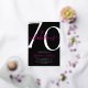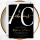 Seventy and Fabulous script, minimal gold foil modern black 70th birthday invitation that you can personalize and send out for your seventieth birthday party celebration. The "70 and Fabulous" is set in a popular script font. The text colors can be changed using the edit menu.