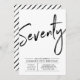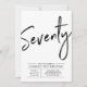Celebrate your special day with this simple stylish 70th birthday party invitation. This design features a brush script "Seventy" with a clean layout in black & white color combo. More designs available at my shop BaraBomDesign.