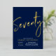 Celebrate your special day with this stylish 70th birthday party foil invitation. This design features a chic gold foil text "Seventy" on a navy blue background. You can choose real foil stamp colour(Gold, Silver, Rose gold). More designs and party supplies are available at my shop BaraBomDesign.
