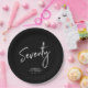 This custom paper plate will add stylish detail to your special day. This design features a simple chic brush script "Seventy" with custom text. Matching 70th birthday invitations and party supplies are available in my shop BaraBomDesign.