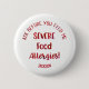 Severe Food Allergies Kids Personalized Don't Feed Pin Back Button. Attach to medicine kits, kids clothing, orbook bags. Red faux foil style typography reads ASK BEFORE YOU FEED ME in curved font above large red font reading SEVERE FOOD ALLERGIES! Add name or other info on the bottom in curved red font. Do not feed me reminder for caregivers. More designs at www.lilallergyadvocates.com