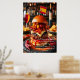 Ignite your taste buds with this sizzling Seville Chorizo Sensation burger. A juicy beef and chorizo-blended patty, grilled to juicy perfection, is topped with melted Manchego cheese, roasted piquillo peppers, and a generous drizzle of smoked paprika aioli, all stacked high on a toasted olive oil brioche bun. A small Spanish flag adds a touch of Spanish charm, while a backdrop of tapas and sangria completes this Spanish culinary masterpiece.