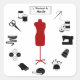 Customize the Label. Here’s my special collection of tools and supplies for fellow fibre artists for sewing, tailoring, dressmaking, needlework, darning, and crafts: sewing needles, spools of thread, pin cushion with stick pins, ribbons, bobbins, thimble, tape measure, embroidery scissors, bolt of cloth, tailor’s model, sewing machine, label and buttons. A thoughtful gift for yourself or that special creative person in your life.