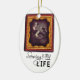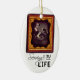 I was disappointed with the writing on the ornament. It’s just too small and can barely be seen. Also it was not as obvious on screen that the position of the hole for hanging was centered on person’s forehead. Writing that came with chosen frame is too small and can barely be seen.