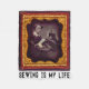 Real photograph of a Victorian woman hard at work on her 'state-of-the-art' sewing machine, along with a fun custom logo: Sewing is My life!