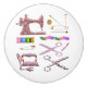 Add a decorative accent to your sewing drawer with a ceramic knob. Sewing machine, thread, scissors, and other sewing craft accessories on this unique and custom design art for yourself or great as a gift idea.