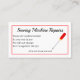 A modern business card for sewing machine repair specalists. The design shows a small screwdriver and a red border. Ideal for any small repair businesses such as computer, mobile phones, electronics and many more. Add your company details for a stylish, modern minimalistic business card.