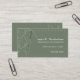 A needle is busy sewing on this business card. The light olive green damask pattern and pinstripe fabrics are joined with a zig zag stitch and basted together to offset your customized information. The reverse shows the needlework complete. Great for a dressmaker, fashion designer, tailor, fabric store or other retailer. Available in alternate colours with matching products.