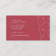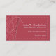 A needle is busy sewing on this business card. The rosy pink damask pattern and pinstripe fabrics are joined with a zig zag stitch and basted together to offset your customized information. The reverse shows the needlework complete. Great for a dressmaker, fashion designer, tailor, fabric store or other retailer. Available in alternate colours with matching products.