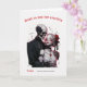A dark and romantic Valentine's Day greeting card featuring a gothic skeleton groom tenderly holding his stitched ragdoll bride – with delicate lace, red roses in her hair, and subtle stitched heart details.