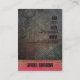 Th e last concept card I created went over quite well, so I thought I would try another. This grungy card retains all girly-ness with a sewing theme and palette of pink on diamond plate. The front features an antique sewing machine and your business name is listed in a vertical format. Add your address, contact details, and name to the back.