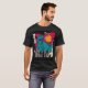 "Sexy Rexy " t-shirt design! This playful graphic features a vibrant, colourful illustration of a giant dinosaur standing atop a skyline holding a heart-shaped balloon in its mouth.