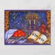 Shabbat Shalom Postcards These one–of–a–kind postcards are based on original painting by contemporary American artist Rae Chichilnitsky. One can select different size and background colour for boarder. The subject is pretty self-explanatory. Through the use of traditional elements and vivid colours it conveys the very special, celebratory side of Shabbat and exudes spiritual joy, light, peace and hope – the sentiments critically important, especially now, in the sad, tough times brought upon people of Israel.
