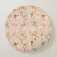 Pretty Shabby Chic cottage living inspired round throw pillow features pastel birds, flowers and branches on pastel salmon background