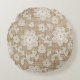 Super cute, Shabby Chic, round pillow features a burlap and lace floral pattern on the front, with a burlap stitched complementary backing. You get two pillows in one.